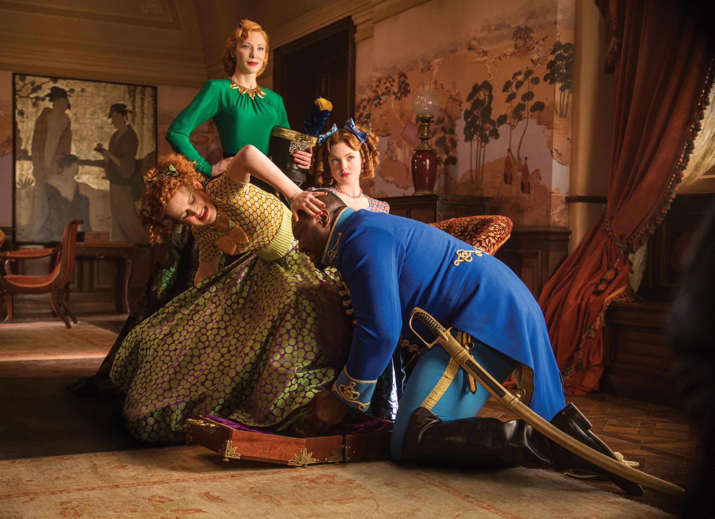 The highlight, of course, was anything Cate Blanchett wore. Channeling Barbara Stanwyck’s lithe, seductive walk and charm, Blanchett’s performance and costumes were amazing. While her entire character was out of the 1940’s (and her daughters, Drizella and Anastasia, were of the bobby sox 1950’s persuasion), it is a testament to the costume crew that the costumes did not clash with the older, 19th century feel of the rest of the characters.