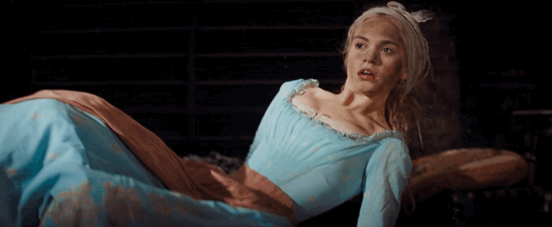 The ramifications of this lack of exposure become evident after her father remarries. The new wife, Lady Tremaine, and her daughters, Drizella and Anastasia, are not ideal. They’re vapid and frivolous. The girls care only for material goods and marriage prospects. Much of Lady Tremaine’s drive as a character is to see her daughters married advantageously. And when Ella’s father dies, Lady Tremaine’s reaction is atrocious! The only breadwinner in the family has died and the first thing she says (after hearing that the last things her husband talked about were his first wife and his child) is, “What will become of us? How will we live?” What a b*tch.